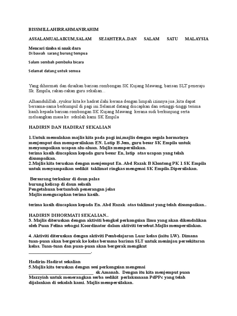 Contoh teks terbaik dan lengkap dari mula program sehingga. Contoh teks ucapan alu aluan.