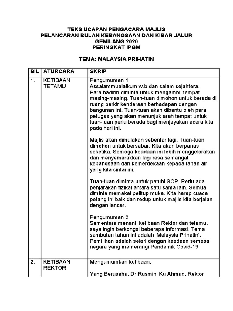 Teks Pengacara Majlis Perhimpunan Rasmi Mingguan Teks Pengacara Majlis Perhimpunan Rasmi Mingguan Studocu
